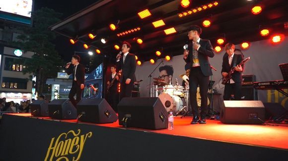 그룹 허니지(Honey G)가 지난 6일 서울 중구 명동에 위치한 눈스퀘어 앞에서 깜짝 콘서트를 열고 현장을 금요일 밤의 열기로 후끈 달아오르게 만들었다.