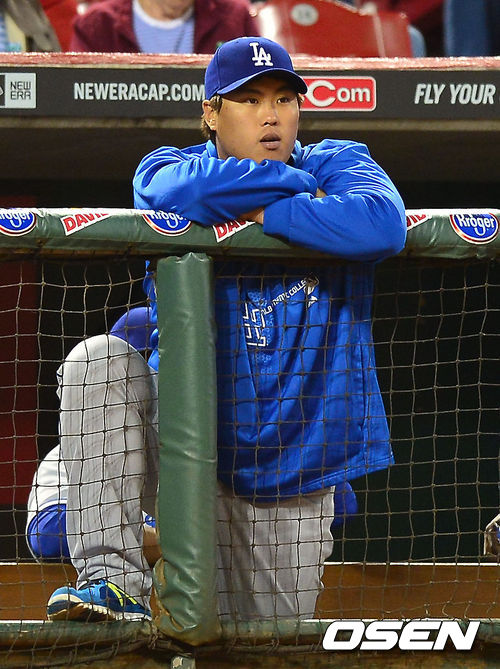 9회 덕아웃에서 다저스 류현진이 아쉬운 표정으로 경기를 지켜보고 있다. / rumi@osen.co.kr