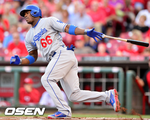 1회초 1사 주자 없는 상황에서 다저스 푸이그가 내야안타를 날리고 있다. / rumi@osen.co.kr