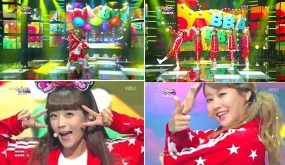 걸그룹 크레용팝이 1년전 팬이 만든 '회오리춤'으로 안무를 수정해 음악 프로그램에 출연했다.