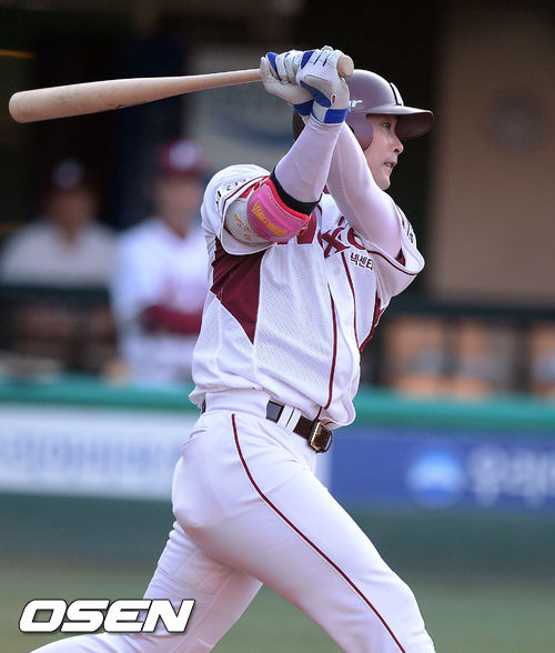 7일 오후 서울 목동구장에서 열린 '2013 한국야쿠르트 세븐 프로야구' 넥센 히어로즈와 두산 베어스의 경기, 2회말 무사 1,3루 넥센 서동욱이 선취 1타점 적시타를 날리고 있다.