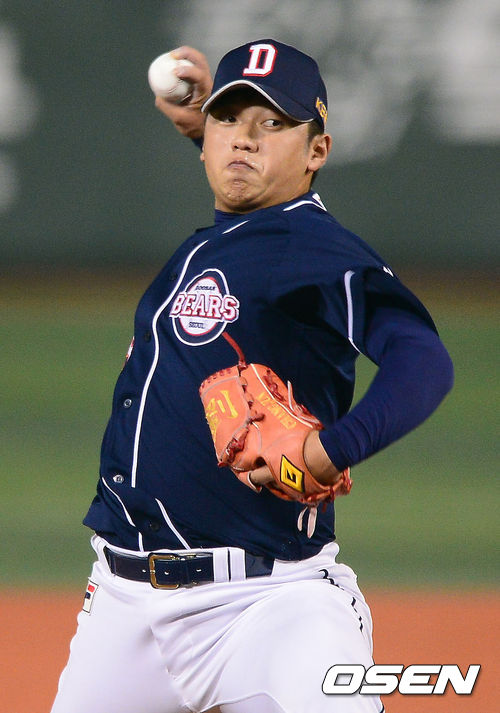 7일 오후 서울 목동구장에서 열린 '2013 한국야쿠르트 세븐 프로야구' 넥센 히어로즈와 두산 베어스의 경기,6회말 두산 유창준 투수가 역투하고 있다.