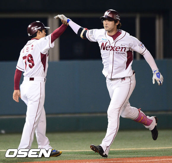 7일 오후 서울 목동구장에서 열린 '2013 한국야쿠르트 세븐 프로야구' 넥센 히어로즈와 두산 베어스의 경기, 7회말 1사 넥센 서동욱이 솔로홈런을 날리고 베이스를 돌고 있다.