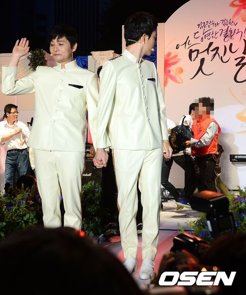 김조광수 감독이 7일 오후 서울 청계천 광통교 앞에서 동성연인이자 레인보우 팩토리의 대표 김승환과 백년가약을 맺었다.
