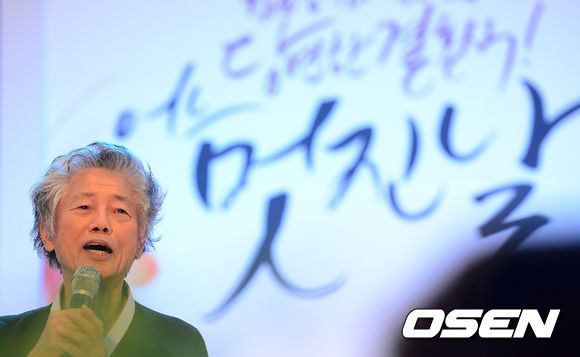 백기완 통일문제연구소 소장이 축하 인사를 하고 있다.
