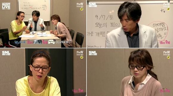 이날 콩트 '꽃보다 할배'에서는 "요즘 예능은 서로 가져다 쓰고 그런 것 아니냐"며 일명 대박 난 프로그램을 갖다 붙이는 제작진의 모습이 담겨 웃음을 자아냈다.