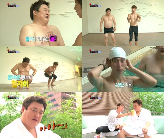양상국과 김준현은 함께 수영을 했다. 점심에 설렁탕과 비빔냉면을 먹어 많은 칼로리를 섭취한 김준현은 열심히 수영을 하며 칼로리를 소모했다. 이 과정에서 양상국과 김준현은 극과극인 몸매를 공개해 눈길을 끌었다. 양상국은 마른 반면 김준현은 풍채 좋은 체격을 자랑했다.