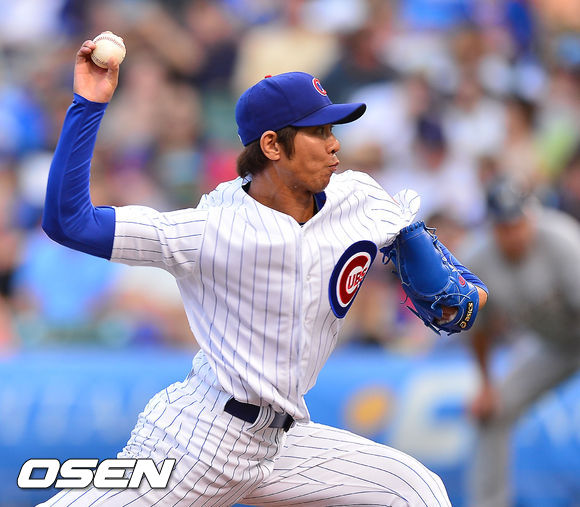 8일 (이하 한국시간) 미국 일리노이주 시카고 리글리 필드에서 열린 2013 메이저리그 시카고 컵스와 밀워키 브루어스의 경기,7회 1사에 마운드에 오른 시카고 컵스 임창용이 힘차게 공을 뿌리고 있다.
