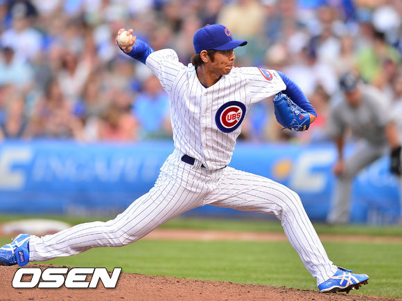 8일 (이하 한국시간) 미국 일리노이주 시카고 리글리 필드에서 열린 2013 메이저리그 시카고 컵스와 밀워키 브루어스의 경기,7회 1사에 마운드에 오른 시카고 컵스 임창용이 힘차게 공을 뿌리고 있다.