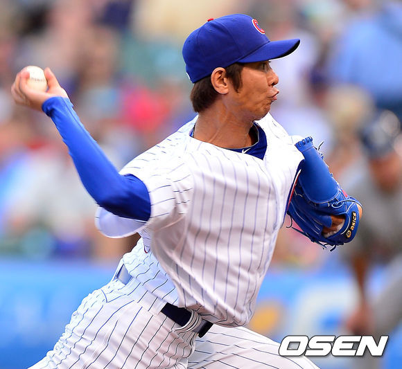 8일 (이하 한국시간) 미국 일리노이주 시카고 리글리 필드에서 열린 2013 메이저리그 시카고 컵스와 밀워키 브루어스의 경기,7회 1사에 마운드에 오른 시카고 컵스 임창용이 힘차게 공을 뿌리고 있다.