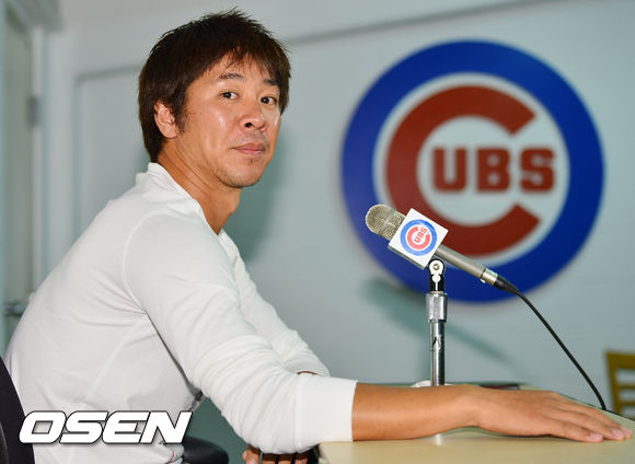 8일 (이하 한국시간) 미국 일리노이주 시카고 리글리 필드에서 열린 2013 메이저리그 시카고 컵스와 밀워키 브루어스의 경기를 마치고 임창용이 인터뷰를 하고 있다.