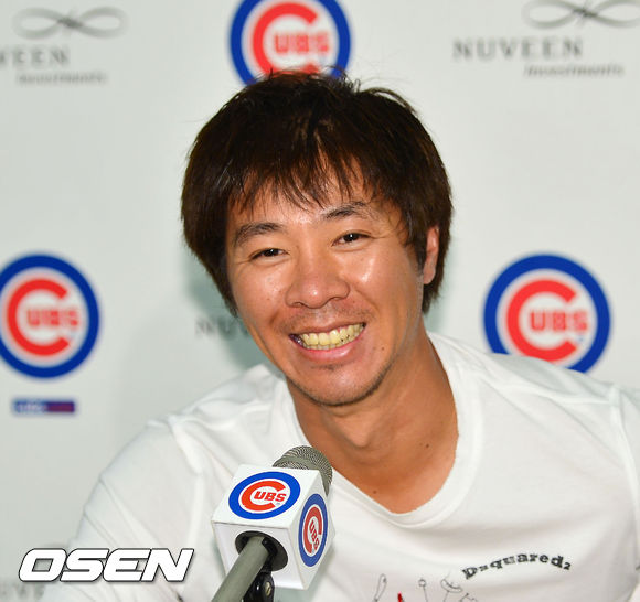 8일 (이하 한국시간) 미국 일리노이주 시카고 리글리 필드에서 열린 2013 메이저리그 시카고 컵스와 밀워키 브루어스의 경기를 마치고 임창용이 인터뷰 중 환하게 웃고 있다.