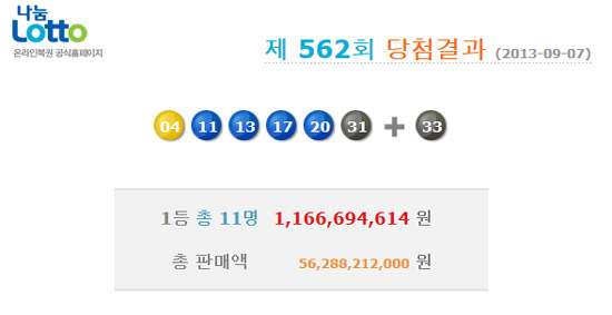 로또562회당첨번호, 나눔로또 홈페이지 제공