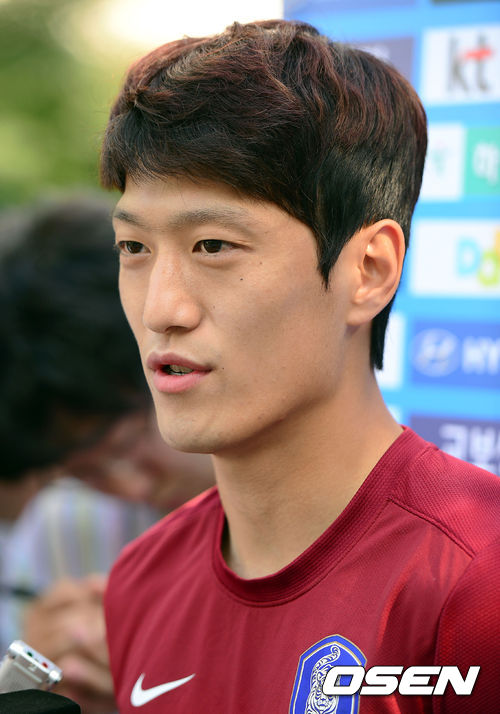 훈련 전 이청용이 인터뷰를 하고 있다.