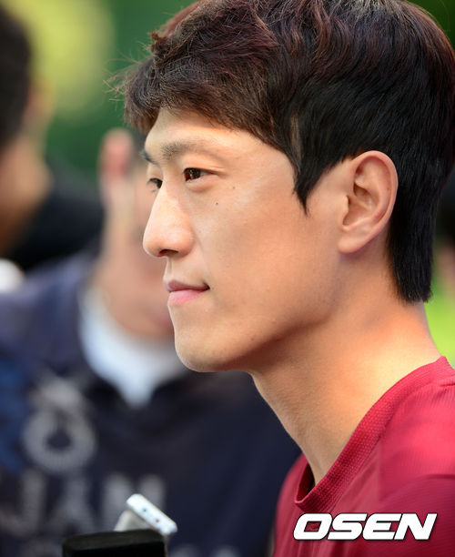 훈련 전 이청용이 인터뷰를 하고 있다.