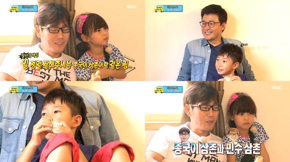 방송인 김성주의 아들 민국이가 '아빠!어디가?' 멤버 중 가장 좋은 삼촌으로 송종국과 윤민수를 꼽았다.