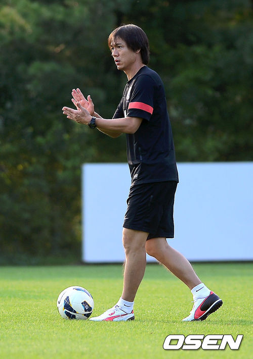 전술훈련을 위해 진행된 미니게임에서 홍명보 감독이 선수들에게 지시를 하고 있다.