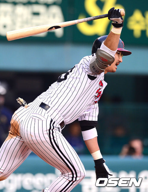 8일 오후 서울 잠실구장에서 열린 '2013 한국야쿠르트 세븐 프로야구' LG 트윈스와 삼성 라이온즈의 경기, 4회말 2사 1,2루 LG 박용택이 1타점 적시타를 날리고 있다