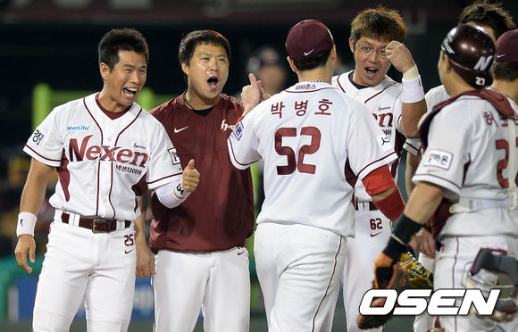 경기 종료 후 넥센 선수들이 승리의 기쁨을 나누고 있다. /sunday@osen.co.kr