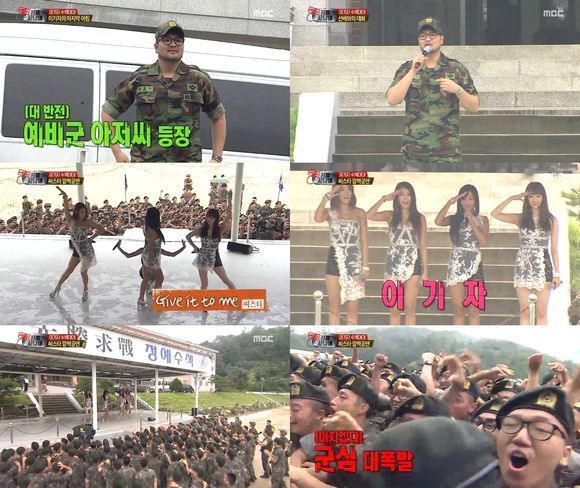 8일 방송된 MBC TV ‘일밤-진짜사나이’에서는 김태우와 씨스타가 이기자 부대를 방문해 축하 공연을 펼치는 과정이 그려졌다. 그런데 두 가수를 맞는 다른 부대 분위기가 사뭇 달랐다. 이른바 ‘군심’은 선배 보다는 ‘걸그룹’을 택했다.