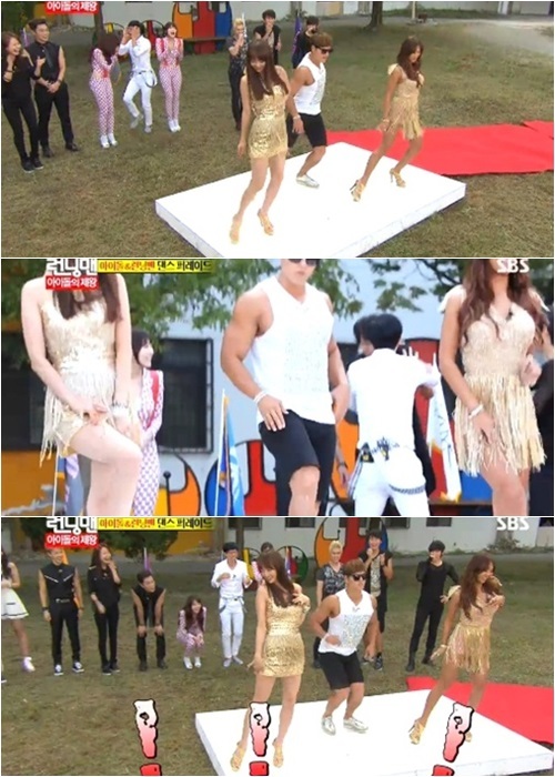 김종국은 8일 방송된 SBS 예능프로그램 '일요일이좋다-런닝맨'에서 씨스타 다솜, 보라와 한 팀을 이뤄 '나혼자' 노래에 맞춰 섹시한 학다리댄스를 선보이며 숨겨놓은 섹시미를 대폭발(?)시켰다.