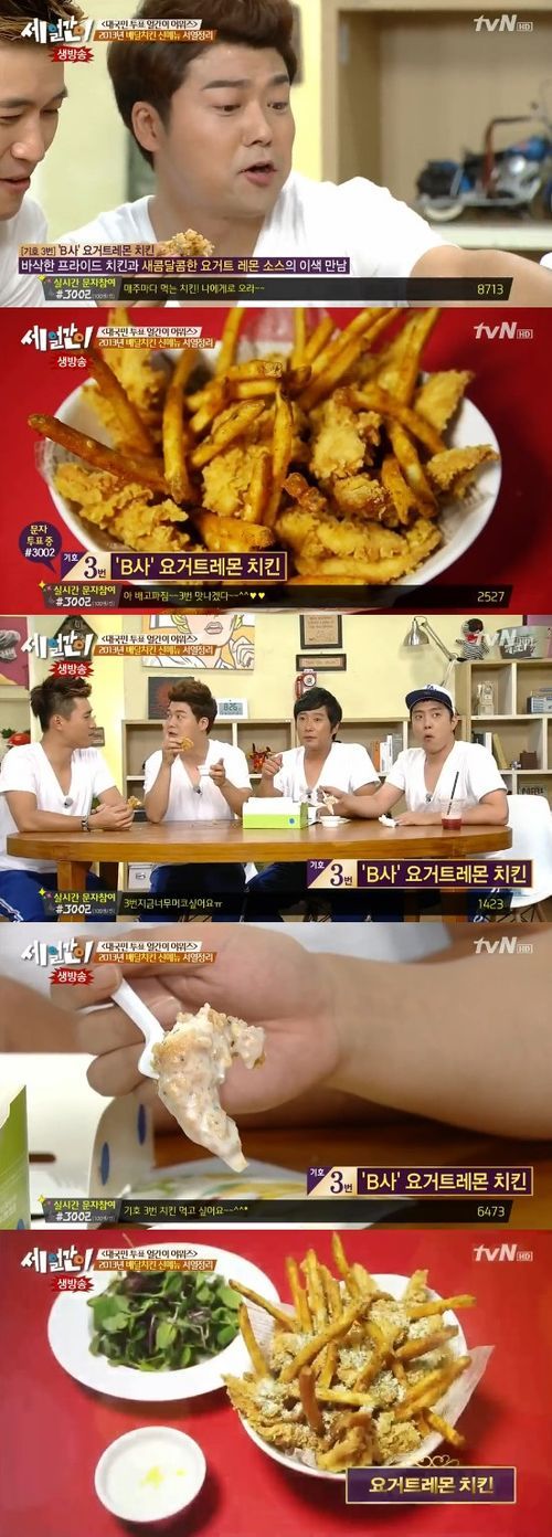 특히 전현무는 “치킨을 요거트에 듬뿍 찍어 먹어봐라. 맛이 정말 신기하다”라며 “새콤달콤한 레몬 요거트라서 여성분들이 좋아할 것 같다”고 추천했다. 이어 이수근은 “맛이 새콤달콤하다. 요거트 소스가 치킨의 느끼한 맛을 모두 잡아준다”고 평가했고, 은지원은 “케이준 치킨 샐러드에 샐러드만 빠진 맛이다”고 설명했다.