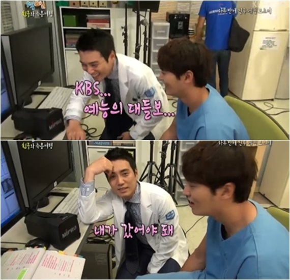주원은 KBS 2TV 월화드라마 '굿 닥터' 촬영장에서 이 같은 미션을 전달받았고 주상욱은 같이 가자는 주원의 제안에 "내가 KBS 예능의 대들보"라고 너스레를 떨었다.
