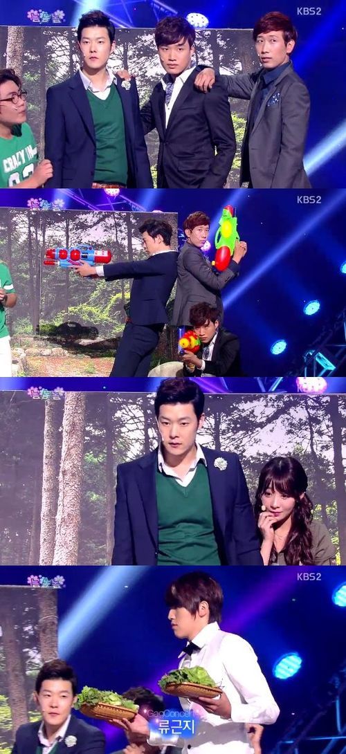 8일 오후 방송된 '개그콘서트-놈놈놈'에서는 계곡으로 물놀이를 떠난 송필근, 안소미와 그를 따라나선 훈남 친구들 김기리, 유인석, 복현규, 섹시한 종업원 류근지의 모습이 그려졌다.