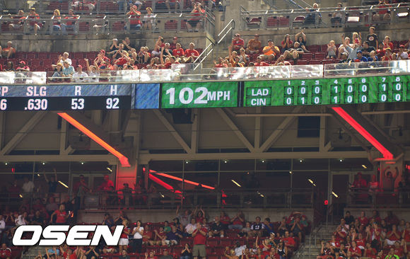 9회 신시내티 아롤디스 채프먼이 102마일 공을 뿌리며 상대타자들을 요리하자 신시내티 팬들이 박수를 보내고 있다. / rumi@osen.co.kr