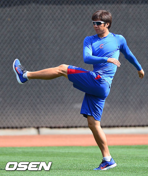10일 (이하 한국시간) 미국 오하이오주 신시내티 그레이트 아메리칸 볼파크에서 2013 메이저리그 신시내티 레즈와 시카고 컵스의 경기가 열릴 예정인 가운데, 양팀 훈련시간에 시카고 컵스 그라운드 위에서 임창용이 몸을 풀고 있다.