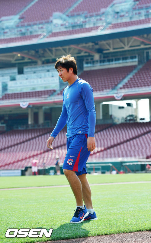 10일 (이하 한국시간) 미국 오하이오주 신시내티 그레이트 아메리칸 볼파크에서 2013 메이저리그 신시내티 레즈와 시카고 컵스의 경기가 열릴 예정인 가운데, 양팀 훈련시간에 시카고 컵스 임창용이 몸을 풀기 위해 그라운드로 나서고 있다.