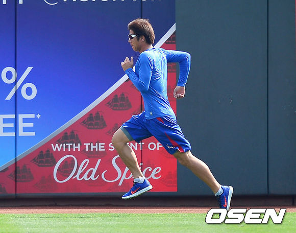 10일 (이하 한국시간) 미국 오하이오주 신시내티 그레이트 아메리칸 볼파크에서 2013 메이저리그 신시내티 레즈와 시카고 컵스의 경기가 열릴 예정인 가운데, 양팀 훈련시간에 시카고 컵스 임창용이 그라운드를 달리고 있다.