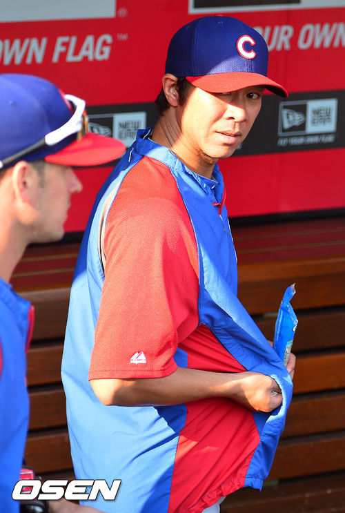 10일 (이하 한국시간) 미국 오하이오주 신시내티 그레이트 아메리칸 볼파크에서 2013 메이저리그 신시내티 레즈와 시카고 컵스의 경기가 열릴 예정인 가운데, 경기 전 훈련시간에 시카고 컵스 임창용이 덕아웃에서 해바라기씨를 주머니에 넣고 있다.