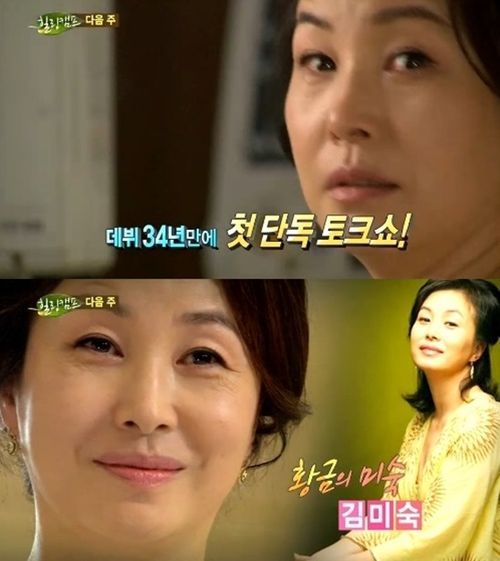 김미숙은 오는 16일 방송되는 SBS '힐링캠프, 기쁘지 아니한가'에 게스트로 출연할 예정이다. 이는 김미숙이 무려 데뷔 34년만에 처음으로 단독 토크쇼에 출연한다는 의미를 지닌다.