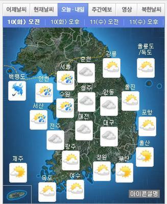 10일 중부 지방에 비가 조금 내릴 예정이다.