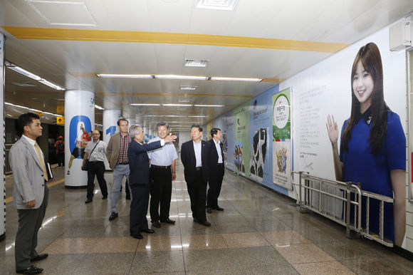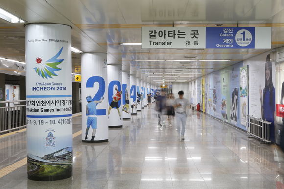 2014인천아시안게임 홍보를 위해 인천지하철 부평구청 역사 승강장 벽면 및 기둥에 대형 래핑광고물이 설치됐다.
