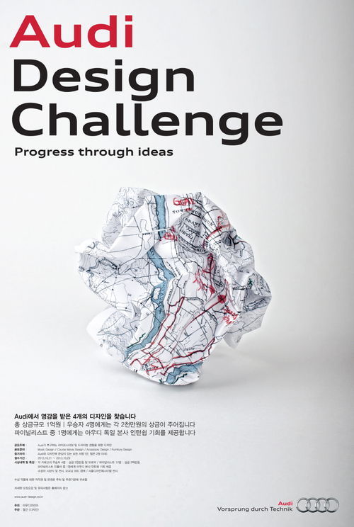 ‘아우디 디자인 챌린지’는 아우디가 추구하는 가치와 라이프스타일을 반영한 창작 디자인을 발굴하기 위한 공모전으로 뮤직, 코스무비, 액세서리, 가구 총 4개 분야로 진행된다. 아우디와 디자인에 관심이 있는 사람은 누구나 응모 가능하며 팀으로 참가할 경우 2명의 인원 제한이 있다.