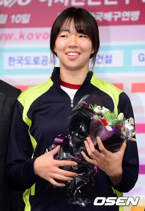 10일 오후 서울 청담동 리베라호텔에서 열린 2013-14시즌 프로배구 여자 신인선수 드래프트에서 현대건설에 1순위로 지명된 고유민이 기념촬영을 하고 있다.