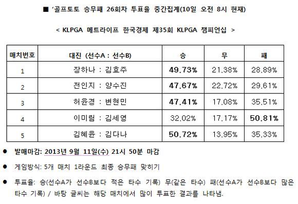 KLPGA 메트라이프 한국경제 제35회 KLPGA챔피언십 1라운드 대상 승무패 26회차 중간집계