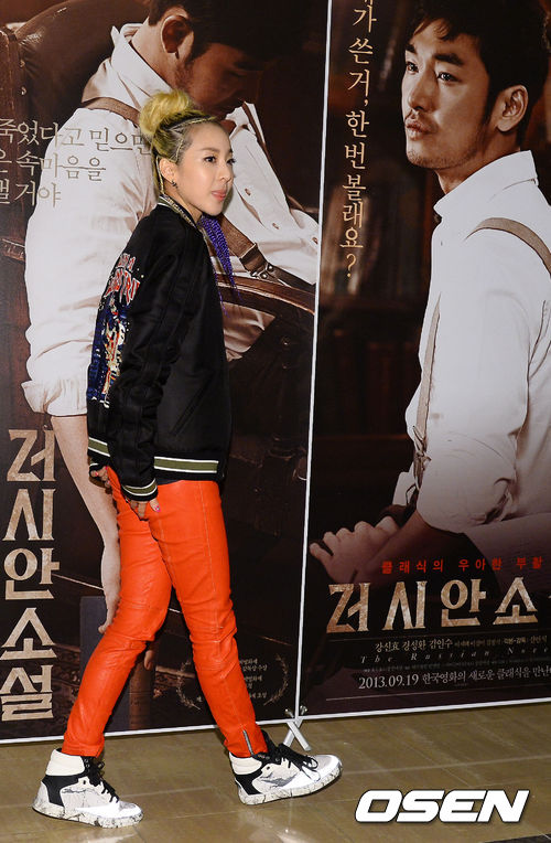 10일 오후 서울 롯데시네마 애비뉴엘에서 진행된 영화 '러시안 소설' VIP시사회에 참석한 산다라박이 포토월로 입장하고 있다.