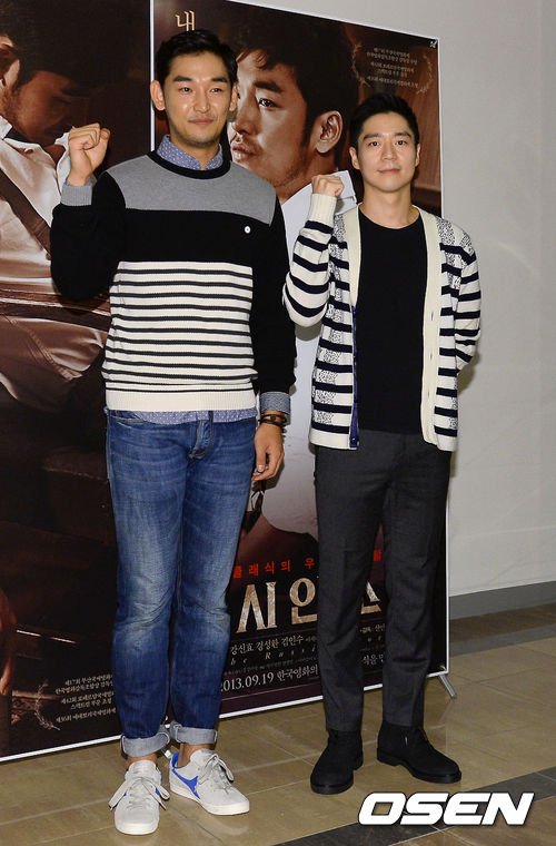 10일 오후 서울 롯데시네마 애비뉴엘에서 진행된 영화 '러시안 소설' VIP시사회에 참석한 강신효 경성환이 포토타임을 갖고 있다.