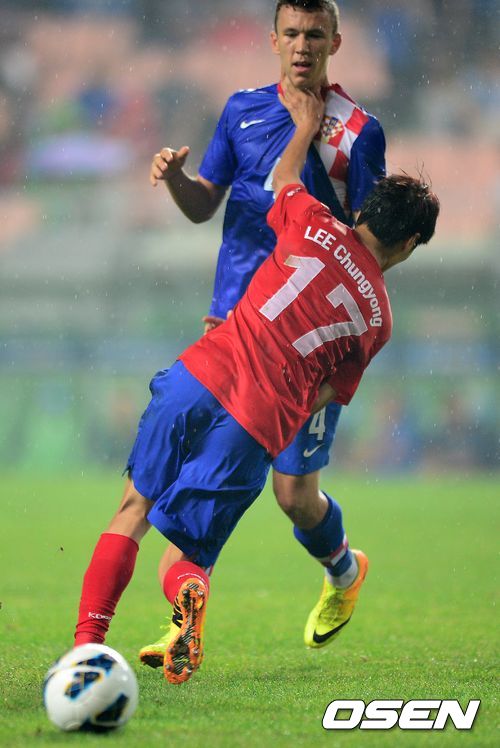 후반 한국 이청용이 크로아티아 수비수에 파울을 얻어내고 있다.