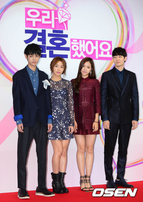 11일 오후 고양시 일산 MBC 드림센터에서 열린 '우리 결혼했어요 시즌4' 기자간담회에서 정준영, 정유미, 손나은, 윤한이 포토타임을 갖고 있다.