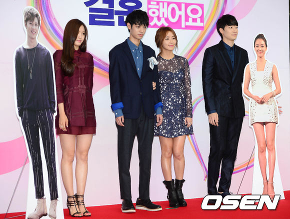 11일 오후 고양시 일산 MBC 드림센터에서 열린 '우리 결혼했어요 시즌4' 기자간담회에서 손나은, 정준영, 정유미, 윤한이 포토타임을 갖고 있다.