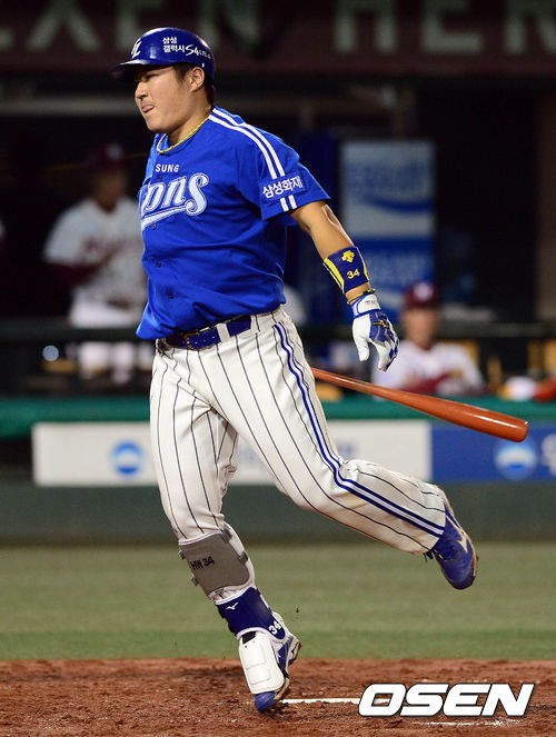 11일 오후 서울 목동구장에서 열린 '2013 한국야쿠르트 세븐 프로야구' 넥센 히어로즈와 삼성 라이온즈 경기 3회초 1사 최형우가 헛스윙 삼진을 당하고 있다.