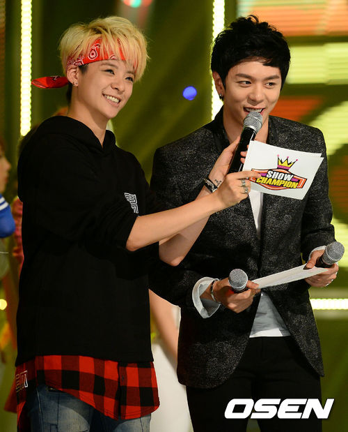 11일 오후 서울 유니클로 악스홀에서 진행된 MBC MUSIC '쇼 챔피언'에서 엠버와 준영이 진행을 하고 있다.