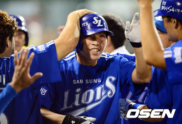11일 오후 서울 목동구장에서 열린 '2013 한국야쿠르트 세븐 프로야구' 넥센 히어로즈와 삼성 라이온즈 경기 9회초 2사 1,2루 정형식이 스리런포를 치고 덕아웃에서 동료들과 하이파이브를 하고 있다.