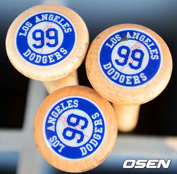 12일 (이하 한국시간) 미국 캘리포니아주 로스앤젤레스 다저스타디움에서 열린 2013 메이저리그 LA 다저스와 애리조나 다아아몬드백스의 경기가 열릴 예정인 가운데 다저스 덕아웃에서 류현진의 배트가 준비되어 있다.