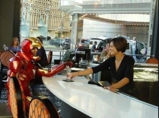 동일인물인지는 확인할 수 없지만, '강단에 선 아이언맨' 2탄도 등장했다. 이번에는 아이언맨이 카페로 진출해 답답한 마스크를 벗고 커피 한 잔의 여유와 담소를 즐기는 모습이다. '강단에 선 아이언맨' 1탄과 이어져 네티즌들은 "강의 마치고 커피 한 잔 하러 오셨나보네"라며 폭소를 터뜨리고 있다.