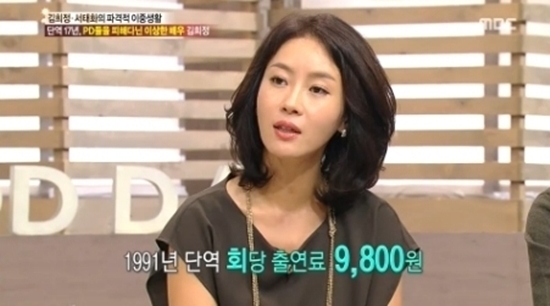 이날 김희정은 "1991년 SBS 공채탤런트 1기로 데뷔했다. 당시 단역시절 회당 출연료가 9800원이었다"라고 말문을 열었다.